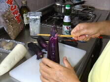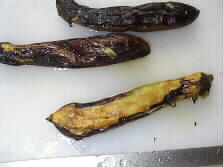 ![]() Next step is to grill egg plants. He sticks to what he has just learned in the school, sticking a chopstick into the head of an egg plant so as to grill well in the hard head part. The teacher of the cooking class might have inspired a sophisticated technology in his head. He wants to trace as exactly as the cooking procedure in the class: "Is there any griller available?" "No, we don't have any kind of that. Use the fish griller in the oven." "It's hard to grill well, I need a new grilling net." My husband firmly believes in that cooking tools make the taste of food. After the struggle for a while, the egg plants were grilled safely, not charcoals. | |
