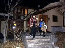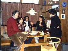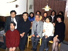 |  | 夜もふけて参りました。そろそろお開きの時間です。最後に記念写真を写しましょう。(写真をクリックして下さい、大きい写真が出てきます) 左から、加藤昌邦氏、その後列左から・佐藤さん、河野文昭氏、溝口薫平氏、美佐子さん、河野美紗子さん、最後列左から小野直子さん、Mie,加藤真樹子さん、木下さん、恵太君、カメラは永野Ken。 | |