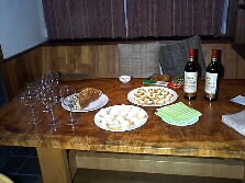 |  |  すばらしい演奏の後は、ワインやコーヒーを頂きながらの楽しいおしゃべりです。皆さんが持ってこられたワインが次々と空けられて、楽しいお話が続いています。 | |