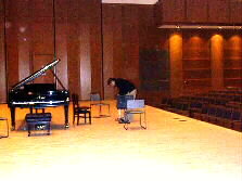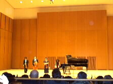 |  | 会場には、湯布院から音楽祭関係者がたくさん、演奏を聞きに来られていました。演奏会終了後、楽屋へみんなで挨拶に伺いました。 演奏の終わった舞台を袖から覗きました。会場から拍手が聞こえてきそうです。最後のブラームスのピアノ四重奏は大変素晴らしかったです。 |