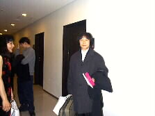 |  | 楽屋から出てこられた河野さん(右から二人目)と談笑される湯布院の皆さん、 左から中谷健太郎さん、溝口薫平さん、右は加藤昌邦さん、中央向こうはヴィオラの大野かおるさん、 |