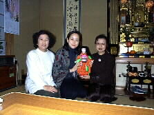 仏壇にもお参りをさせてもらったり、手作りの市松人形を抱かせてもらったり、家のあちこちに生けてある池の坊のお花を見せてもらったりと、いろいろ貴重な経験をすることが出来ました。 Yangさんの為にとワインで乾杯、かわいい花束を頂いて帰ってきました。 |