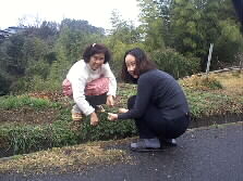 ![]() 温かい日が続いたので、蓬が芽を出しています。Yangさんと一緒に蓬を摘んでいます、今日は草もちを作ることにしました。上新粉と白玉粉を蒸して、蓬を混ぜて草もちを作りました。