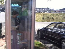 富士見が丘でグレイ電話を見つけてYangさんはカードで故郷のお母さんに電話をしました。我が家にきてから、今日で4日目、少しお母さんの声が懐かしくなっていたのでしょうか、電話ボックスから出てきたYangさんは、とてもいいお顔をしていました。 |