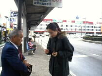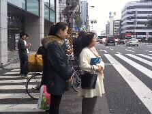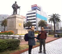 arms. (Right) In front of Sorin Otomo statue,a