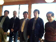 |    オフ会第二部の辰巳芳子先生特別講演会の時間になったので、一応、お開きの挨拶をゆきさんがして下さいました。とても立派な幹事さんでしたね。お世話役の小野さんも本当にありがとうございました。皆さん神妙に聞いていますよ。(右の写真、左から)菅さん、松村さん、栗田さん、記念写真に出遅れた大分の結城さん、永野Kです。 | |