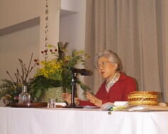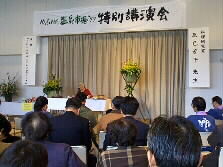 |  | ホールでは既に料理研究家の辰巳芳子先生の講演「これからのゆふいんに望むこと」というお話が始まっていました。皆さん、静かに熱心に聞いておられます。 |