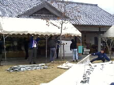 |  | 盛会のうちに終わった講演会でした。終了後は皆さんがテキパキと会場片付けをなさっています。ゆふいんネットの皆もイスやテントの片づけを手伝いました。 |