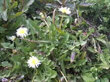 |  | 歩道の脇で踏まれそうになって咲いていたタンポポ、ナントこれも白いタンポポです。 |