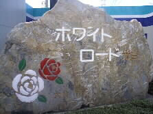 |  | いつもは車でサーーッと駆け抜けてしまうホワイトロード、歩くといろいろと見えなかったものを発見します。こんな大きな石の記念碑がガソリンスタンドの壁に沿って作ってありました。始めて見ました。 |