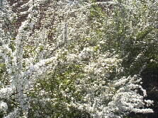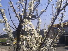 |    まだまだホワイトロードで見つけた白い花です。左は白い桃の花、右は雪柳です。昨夜までの雨が嘘のように晴れた青空の元で咲く白い花は本当に美しいですね。 | |