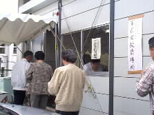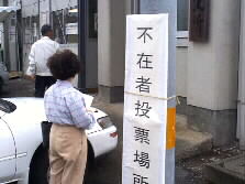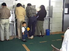|  | 中へ入ると、こちらも満員。たくさんの人が不在者投票をしていました。まだ選挙権の無い坊やが所在なげにお母さんの投票を待っているのがとっても可愛かったです。 |