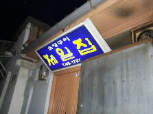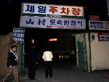 |  | 韓国の昔むかしからの歴史を学びながら馬山に着きました。先月に私の弟が馬山港へ仕事で来ていたので、写真を見せてもらったり話は聞いていましたが、想像していたよりうんと大きな賑やかな都会でした。 ホテルに案内をして頂く前に夕食を頂くことにしました。車を駐車場に入れて少し町を歩いて細い路地を入って、こんな看板の前に来ました。 |