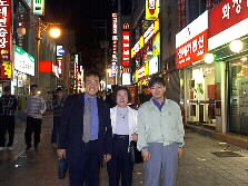 |  | もう夜の10時だというのに、若い人で大賑やかな町です。でも、韓国の経済も厳しくて、外食をする人が減って店仕舞いをする古い食堂もあって寂しいと先生のお話です。 駐車場に戻ってきました。ここからホテルはすぐでした。サボイホテルという「むくげの四花」のホテルでした。明日は10時半に迎えにきて下さるという先生、今日は本当にいろいろとありがとうございました。 |