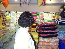 |  | こちらはお布団やさんです。韓国のお布団は薄手です。そうなんです。寒い韓国では、床暖房(オンドル)が発達しているのでお布団は薄手で大丈夫なんです。寒がりの私には本当に羨ましいお話です。 鮮やかな色の組布団がとても可愛かったです。 |