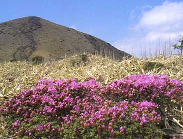 下山することにしました。とっても寒いです。しかし、熊笹の中にミヤマキリシマがあちこちに美しく咲いていました。ミヤマキリシマはこの辺りの山の宝石のような花です。これから6月初めまでが見頃です。