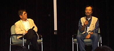 |  映画の後では、ステージにこの映画を作られた、呉徳沫監督(左)が上がられて、会場の人の質問も受けながら、映画の話をされました。ご自身、在日2世、戦後に受けた民主教育の素晴らしさに感動していたら、自分とは全然関係の無い日本人だけの話だった、ということから、戦後の在日の人々の歴史をきちんと描いておきたいと思われた。それはまた日本人の歴史でもある、と話された。対談のお相手は、同じくドキュメンタリー映画監督の西山氏。 | |