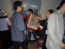 |  | 私たちの今から見る映画は、戦後在日50年史「在日」という4時間15分の大作です。疲れるといけないので、入り口で座布団を貸して下さいました。 |