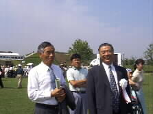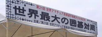 |  第21回世界アマチュア囲碁選手権戦大分大会(6月7-11日・大分東洋ホテル)を記念して今日は、この4月に開園したばかりの七瀬川自然公園で「世界最大の囲碁対局」が行われました。 | |
