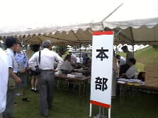 |  | 午後2時半より対局とのことで、少し早くに公園に行ってみましたら、本部席にたくさんの人が集まっています。 |