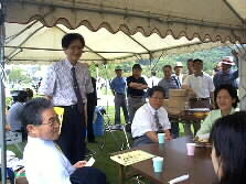 |    木下市長さんも暑い中、あっちこっちとまわって見ておられました。また緑陰では、家族づれも楽しそうに観戦です。 | |