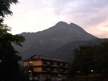 |  | 運営委員会の開かれる湯布院の「ことこと屋」に着いた時は、7時半でした。由布岳が夕焼けの残照にくっきりと姿を見せていました。 今の季節の湯布院の風物詩は蛍が見られることですが、雨上がりの今夜はちょっとそれは無理でした。 |
