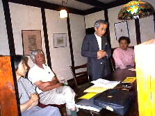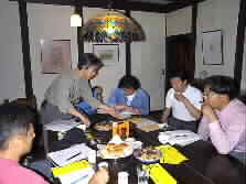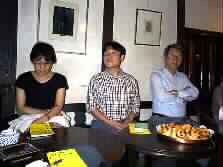 |    今夜、集まった実行委員を紹介しましょう。左の写真・右から野々下さん、井尾さん、阿部さん、永野Ken,左の写真・右から久保田さん、日野さん、日野ままさん、木部さん。 | |