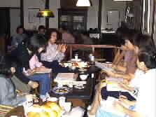 |  | 今夜、集まって下さった実行委員会のメンバーの自己紹介の後、皆さんの持ち寄って下さったパンやお菓子をことことやのおいしいコーヒーで頂きました。そして演奏会へ向けての準備の話し合いに入りました。 こちらのテーブルでは、機材の運搬や会場の設営の打ち合わせ。また印刷物のことについて、別府の印刷所の宮崎さんとの相談などがありました。宮崎さん(右から二人目)は別府のおいしい友永パンをたくさん差し入れして下さいました。 |