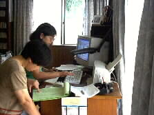 |    そしていよいよ二人一組になって入力作業に入りました。夫のパソコンを使って的場さんが、阿南さんの呼び上げる数字を入力します。私は、安井さんの呼び上げる数字を入力をします。まだまだ、記入ミス、計算ミスが見つかって、その都度、本人に電話をかけて確認をしたり、検算をしたり、入力もなかなか大変です。 | |