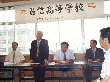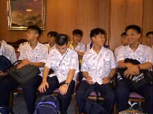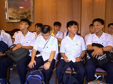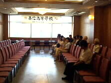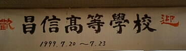 ![]() On the wall of the guest hall is such a wonderful banner that reads "welcome Changshin high school." The high school is attached to Changshin College to which we visited this April in relation with the Internet home page on the late Mr. Terao. When I first heard of the home stay, I was surprised to know that they would come from Changshin, but at the same time, I was very delighted as well. |