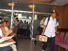 Now, they come in. They are all in uniform and big luggages with hands. The 34 students will stay in 17 host families. |