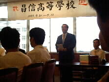 Mr. Kimoto, the principal of Beppu high school, makes a few words and talks about the home stay program this time. |