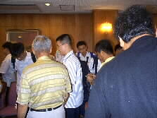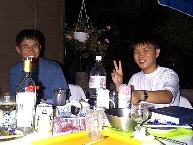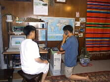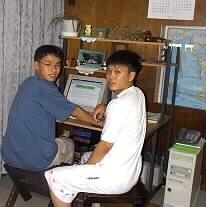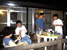 They are enjoying the Internet connection, browsing various pages including ours. All the students will go sightseeing by bus tommorow. As we have to get up early in the next morning, we exchanged good-night. Messages from Park & Yang : What a great day it was! Though we had some tension, we felt kindness of two japanese in this house.They tought us many thing.For instances, culture, kindness,active life,and so on.These gave us great impression.Frankly speaking,we respect this kind people.We never forget four days of japan forever! Thanks Ken and Mie. |