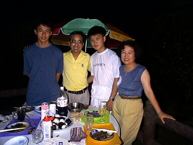 Now, all of us were filled up. We moved to the air-conditioned living room. Mr. Yang calls his parents in Masan, already got homesick? |