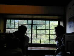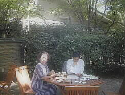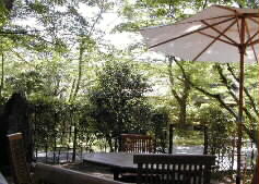 |  | 亀の井別荘の中谷健太郎さんにお会いして蛍火園のテラスで木漏れ日を浴びながらお話をしました。 |