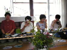 The guests came down all the way to remote Oita from Ichikawa. Thanks to them, we presented hand-made dishcloths as the souvenir. All of Oita members sketched wild flowers on them. Although they are not so good, we hope the guests will remember the nature of Oita by looking at them.