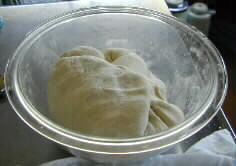 A pinch of salt is added to the special local flour before kneading to make the dough with the softness of earlobe. As the flour is not bleached, the color is grayish a little. The dough is left for ripening for 30 minutes under a wet dishcloth.