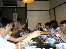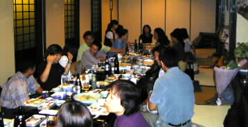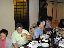 |  音楽祭のパーテイーというと、立食パーテーが多いので、今夜のような純和風の宴会はとっても珍しい、御寿司やさんということで、珍しい秋刀魚のおさしみや、握り、天ぷら、ナスと豆腐の味噌田楽、茶碗蒸し、とおいしいお料理にした鼓を打つ。 | |