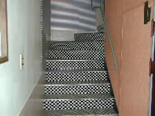 |    実行委員長の加藤昌邦さんを先頭に湯布院の駅前通りを歩いてやって来たのは、こんなモダンな階段の上、音楽祭ボランテイアスタッフの経営している「ingbar」 | |