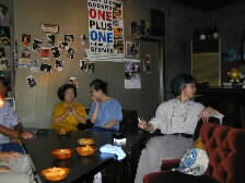 |    中谷健太郎さんからの差し入れのビールであっちこっちに話の輪が広がっています。私は、直子さんや美砂子さん、松本さんとおおいに話が盛り上がりました。 | |