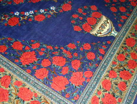 Those arts are by Mr. Abolefazl Rajabian, who learned weaving from his father and has handed down the art more than 60 years in his studio. The motif is of rose as well, the national flower of Iran. I wish I could hang such a beautiful colored rug on my wall.