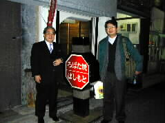 |  | さあ、今夜の歓迎オフ会の会場のお店「はしもと」にやってきました。すぐに出席者の田中さんがこられました。田中さんはコアラ会員ですが、オーロラの会員でもあり木津さんとはネット仲間です。 |