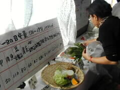 A sample table shows a target of taking food by a family in 30s. Actual foods and cooked dishes will be displayed together with the table.
