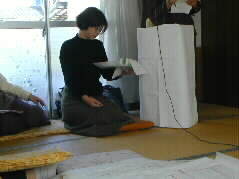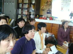 Now the rehearsal started. Mrs. Shiotsuki presents a sample of her household account by explaining how she had made her budget, how she managed her family budget, and how to make a new budget for the coming year. She stresses the importance of the basic concept in planning a budget, which she has learned through the activity of Group of Friend. The entire attendants are listening very eagerly.