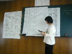 We have a study meeting of our Group of Friends today. All the participants joined together with their actual results of household account's monthly average from January through September this year. They were attached on the wall of the meeting room and were explained one by one. Then we looked back how we had made household budget and what was the actual result of them after nine months. We discussed on budget-and-result and selected a model case to be disclosed at the study meeting.