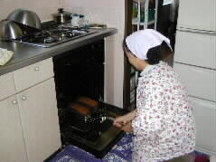 |    レシピを台所の窓に置いて分量を間違えないようにお菓子を作ります。今日は人参ケーキを焼きました。すりおろした人参がたくさん入るおいしいケーキです。 | |