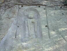 | あまり温かいので、父母も誘ってドライブに出ました。揖保川の東嘴崎にかわいい磨崖仏を見に行きました。「イボ神さま」と言われて信仰を集めています。 |  |