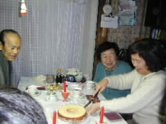 |  | みんなでケーキを食べました。二人のお気に入りだけあって、本当に滑らかなおいしいバームクーヘンでした。こんなにうれしい母と一緒の誕生会は本当に何年振りでしょうか。 岳人・恭代さんありがとう。 |