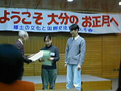 |   | Mr. Akimitsu Hirano, the chairman of LCIE, made a few words in the beginning. LCIE has been promoting a program to host foreign students learning in Japan in order to make them experience grass-roots base exchanges in ordinary homes here in Oita. The program has come to 17th this time, hosting 3,353 students from 108 countries. This time, 82 students from 19 countries have made application fro the program. Host families are located not only in Oita City but also in Tsukumi, Kujyu, Aki, Nakatsu and other areas in Oita prefecture.