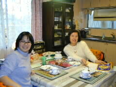 | She kindly helped us in preparation of a dinner. As we have never been to Hong Kong until today, we opened an atlas and asked a lot on her island. We hope we will have pleasant days from today. |   |